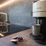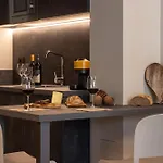 아파트는 필요한 모든 가전 제품을 갖춘 부엌을 제공합니다.